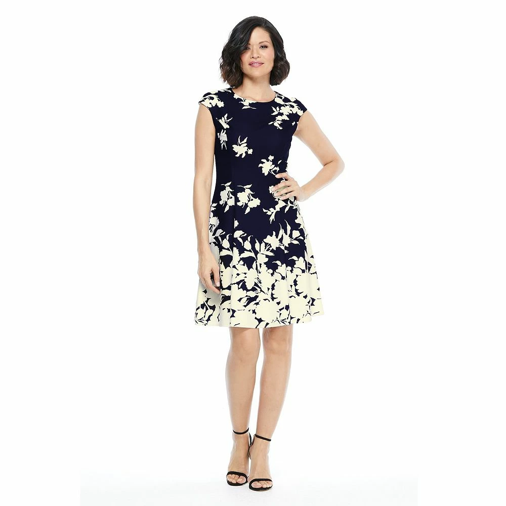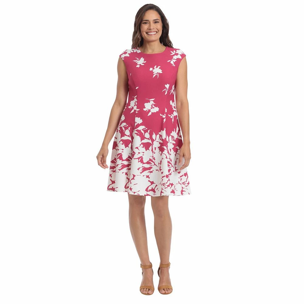 Featuring a flirty fit and flare silhouette, this petites’ London Times dress is sure to garner compliments.