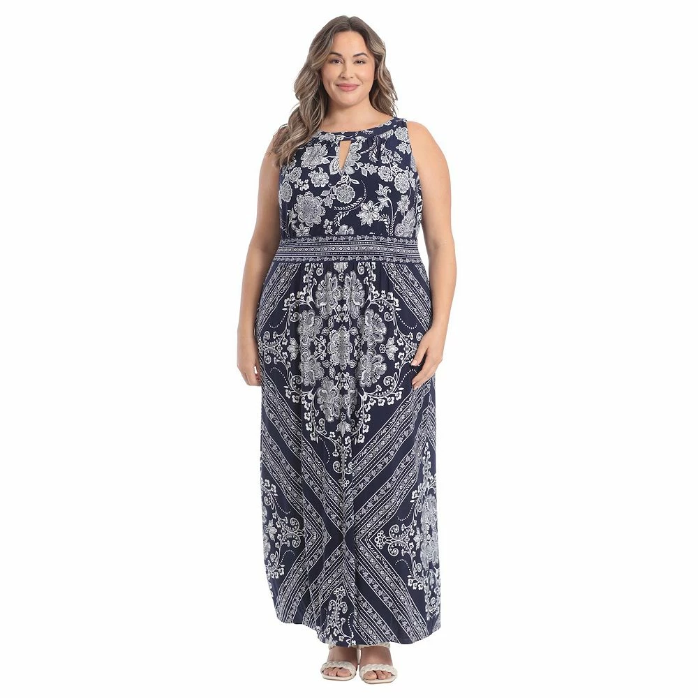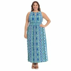 A halter neckline lends feminine style to this maxi dress from London Times.