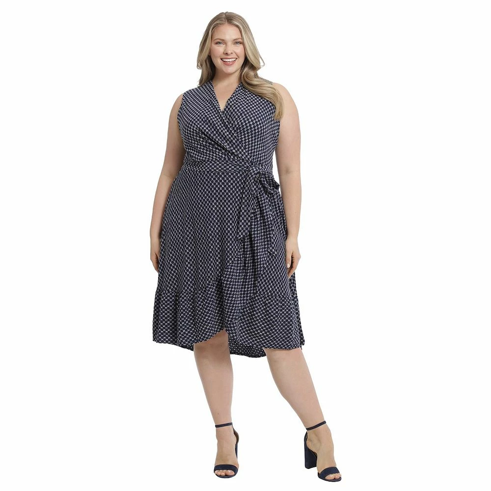 A fun print and a flattering cut make this women’s faux-wrap midi dress from London Times a must-have!