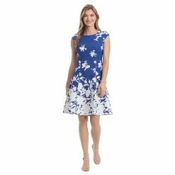 A fun print and a flattering cut make this women’s fit & flare dress from London Times a must-have!