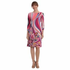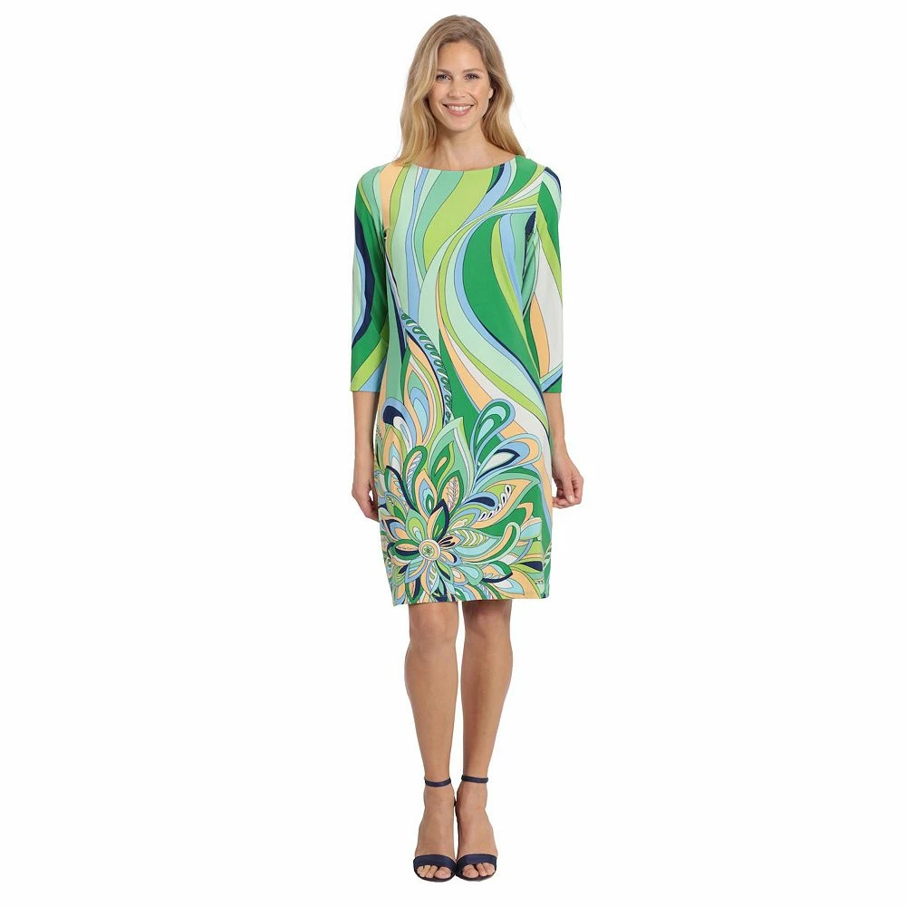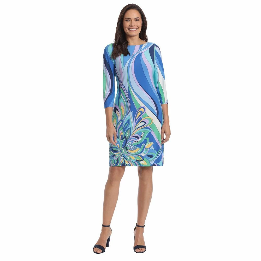 A bold print and loose shift silhouette makes this women’s London Times shift dress the perfect pick.