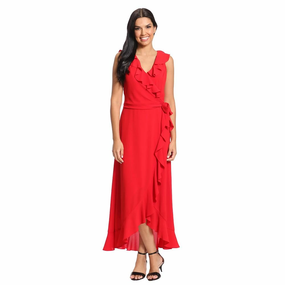 You’ll love the flattering, feminine style of this women’s ruffle faux-wrap dress by London Times.
