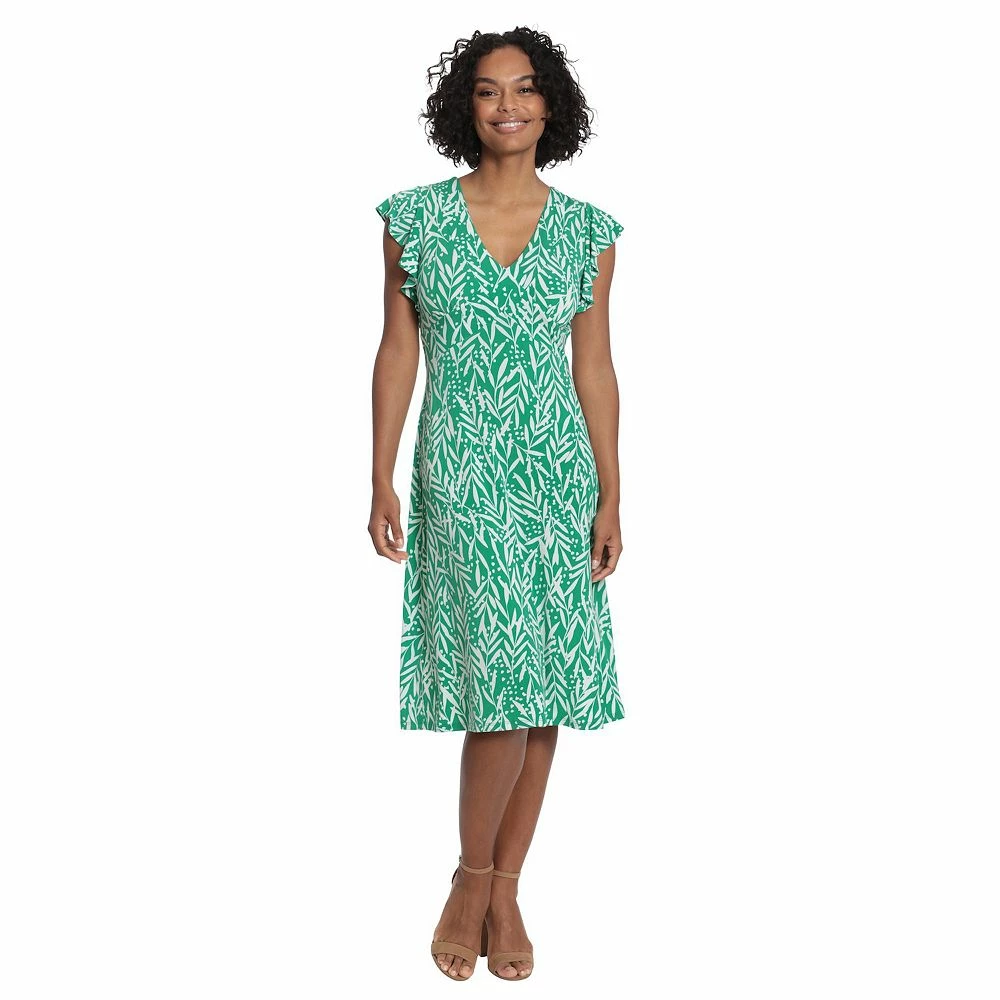 No matter the occasion, you’ll rest easy knowing that when you arrive in this women’s ruffle sleeve print midi dress from London Times, you’ll be the best dressed there.