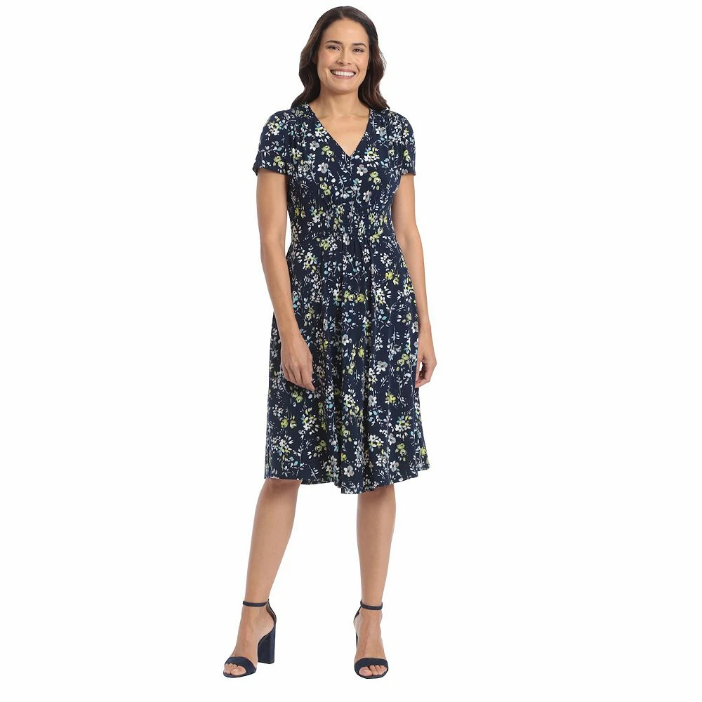 No matter the occasion, you’ll rest easy knowing that when you arrive in this women’s smock waist fit & flare dress from London Times, you’ll be the best dressed there.