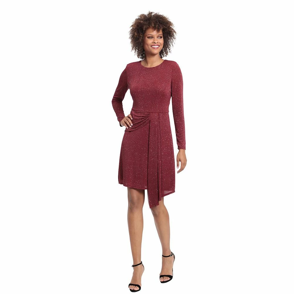 You’ll sparkle and shine when you wear this glittery draped women’s mini dress from London Times.