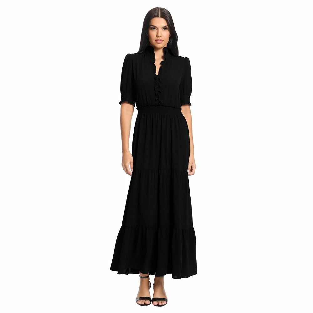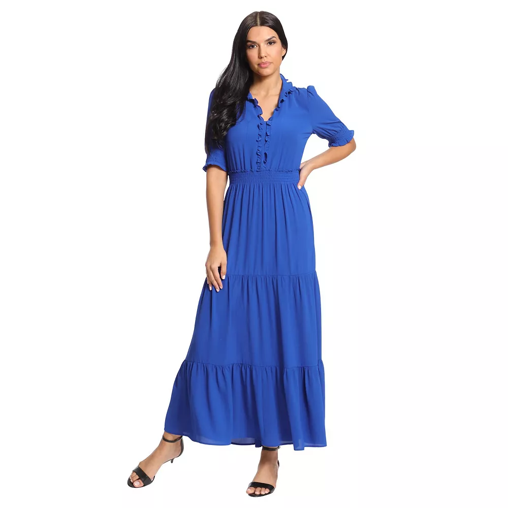 Arrive in style when you rock this women’s tiered ruffled maxi dress from London Times. Being stylish has never looked so good!